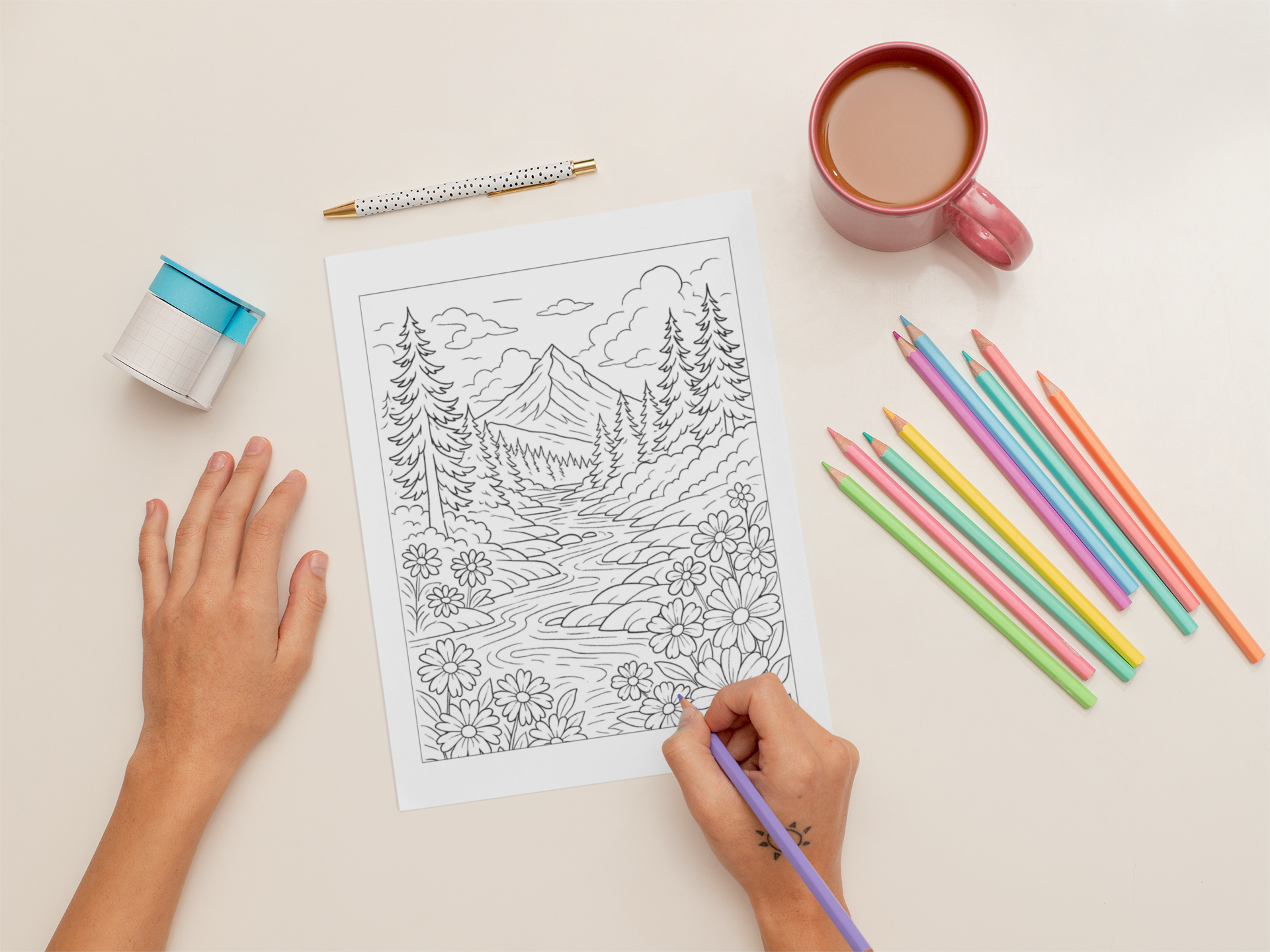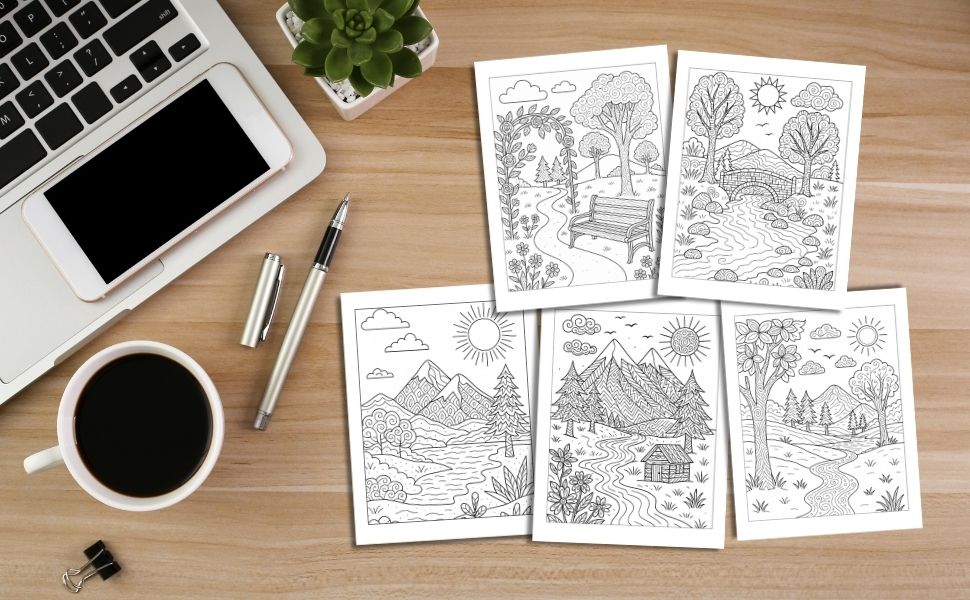 Relaxing Landscape Coloring Book for Adults offers a peaceful escape into nature through art. With 40 hand-drawn illustrations of scenic views—mountains, forests, and tranquil outdoor spaces—this book is designed to help you slow down, breathe, and rediscover your creative calm.
